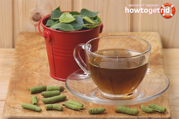 Der Harnsäurespiegel im Blut nimmt aufgrund von Kräuterkochungen ab. Bei Salzablagerungen hilft ein Getränk aus Birkenblättern. Das getrocknete Knüppel wird zerkleinert, messen 2 EL. l und machen Sie eine Tasse kochendes Wasser. Vor dem Frühstück und Mittagessen wird ein Glas Brühe in einem Zug getrunken. Machen Sie nach einem Monat Kurs eine Pause.