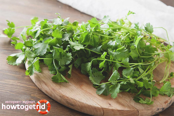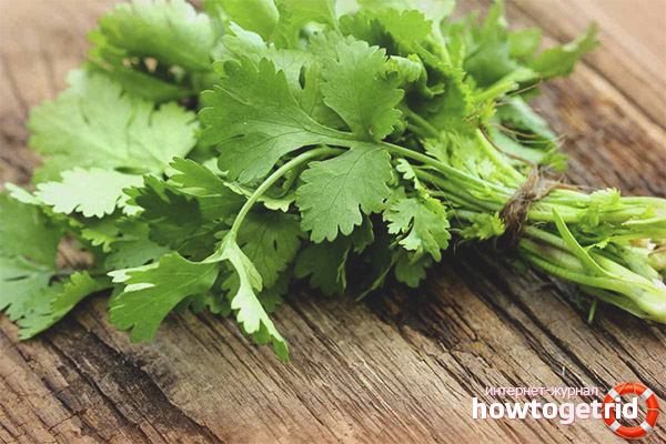 - Koriander ist bei individueller Unverträglichkeit der Komponenten kategorisch kontraindiziert. Das Vorhandensein von ätherischen Ölen kann die Entwicklung einer allergischen Reaktion auslösen.