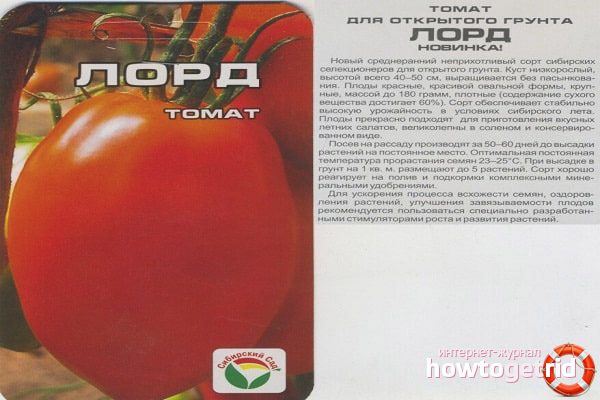 - Unprätentiösität. Diese Sorte kann in allen Regionen Russlands sowie in den Nachbarländern angebaut werden. Tomato Lord ist winterhart gegen Kälte und Hitze.