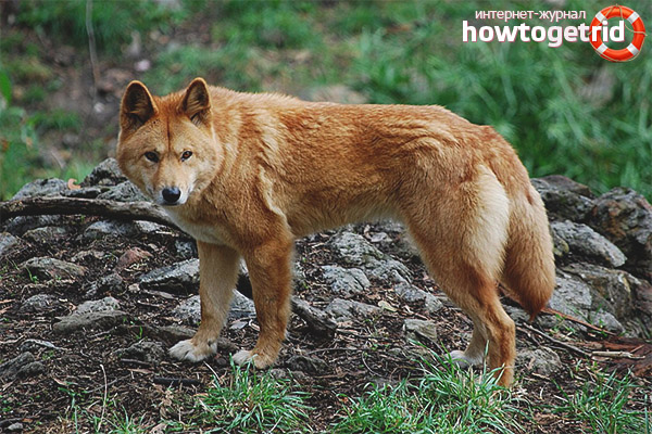 - Les chiens sont souvent de couleur rouge, mais les représentants noirs, tachetés ou blanchâtres de l'espèce sont très rares. Ces individus peuvent être croisés avec des chiens domestiques, de sorte que leurs données externes changent. Les chiens de race pure n'aboient pas, ils hurlent ou grognent.