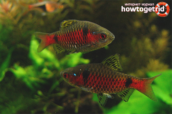 Barbaras are very lively, unpredictable and funny fish. They are very interesting to watch in the aquarium, which is why they are very popular today. Another great advantage of these pets is their simplicity in terms of maintenance and nutrition. Basically, at the word barbaruses, everyone recalls the Sumatran species, however, in this family this is not the only variety of fish. Scarlet barberries are no less interesting and beautiful, however, they are not as common and popular as Sumatran ones.