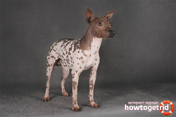 - Dogs without hair can have any skin color. Usually they are the same color with several spots. If there is a fluff on the dog’s body, it should be white. If the wool is two-color, such a dog will not be able to participate in the exhibition.
