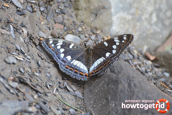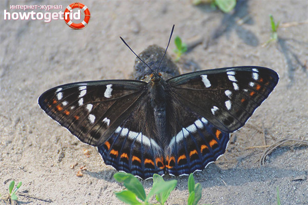 In a warm period of time, on forest edges or the banks of ponds, you can meet butterflies with characteristic spots on the wings. This is a butterfly poplar ribbon, it replenishes its reserves of trace elements.