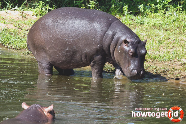 The behavior of hippos is often unpredictable, especially this unpredictability is characteristic of males and females who protect their cubs. If another animal angered a hippopotamus, then he is able to kill him. This can happen under different circumstances. A hippo can gnaw its victim's throat, trample it, tear it with fangs, or simply drag it with it to the depths.