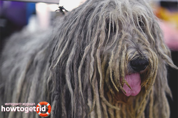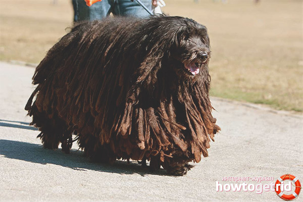 - The greatest attention should be paid to wool. Separate hairs of a pet's fur coat are covered with a fat layer, which performs the function of protecting it from moisture and other external influences. Therefore, bathing animals can be done only a couple of times a year. Frequent washing destroys this layer, and if the wrong shampoo is used in addition, the situation is even worse. As you know, hair will not be able to form into dreadlocks. And they are precisely the main property of the breed. Even when debris or grass gets into the wool, it is necessary to carefully pull them out, and do not untangle these woolen laces. You can’t cut them off only if we are talking about some kind of surgical intervention. Woolen cut may not grow to its previous length. But, despite the presence of dreadlocks, this dog should look gorgeous.Therefore, it is worth monitoring the condition of the hairstyle, especially if the dog participates in exhibitions.