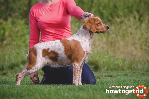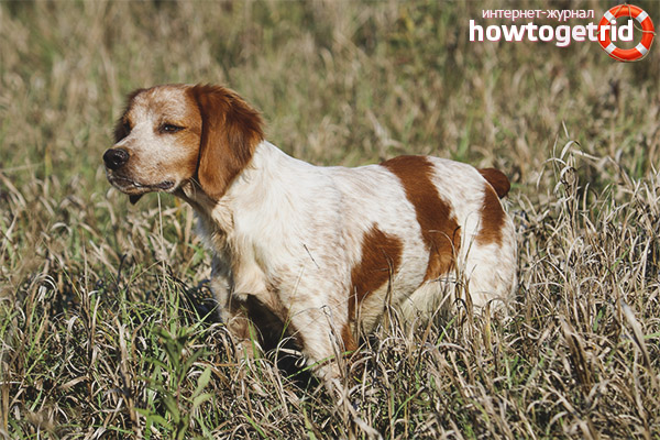 The breed is prone to attack by parasites. Fleas, lice, bugs - all living creatures actively breed in thick hair, as well as on the skin and under the skin, causing dry seborrhea, allergies, dermatitis and other skin diseases. Also, helminths are often wound up in Breton, since the animal often spends time outside the house and picks up “excess” from the ground. It is important for the owner to timely anthelmintic the dog, make routine vaccinations, and treat against skin parasites.