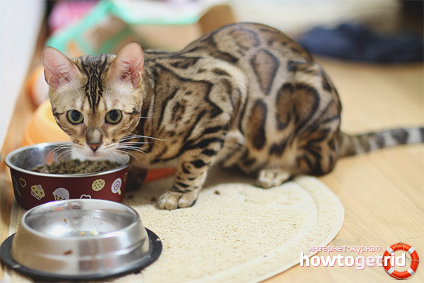 - It has already been mentioned that feeding the animal of the present breed can be carried out using blanks in the form of dry or wet food or homemade food. Disputes regarding the choice in one direction or another are ongoing on this day and are not going to subside. However, the world's leading veterinarians agreed that purchased food for Bengalis is still better. However, they are not without negative characteristics.