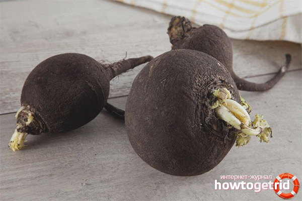 This unpretentious vegetable does not require a special soil composition and strict alternation of garden crops, tolerates temperature extremes and drought, becoming only more saturated from a lack of moisture and acquiring a burning taste. Mustard oils in pulp and leaves provide it. The tops are very similar to radishes, juicy white flesh with a specific smell is hidden behind the black skin.