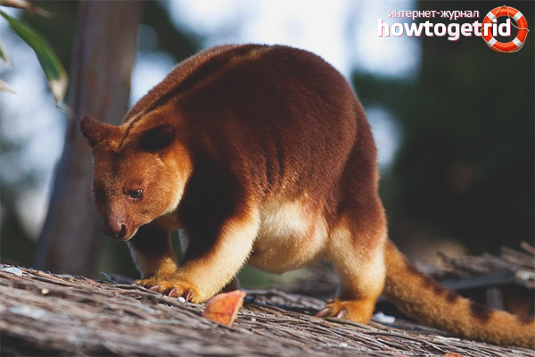 Wood Kangaroo refers to the inhabitants of New Guinea and Australia. These representatives differ from the self-like not only in their habits, but also in their mode of existence. If the rest of the relatives spend most of their life on earth, then the discussed individuals hide in the crowns of the trees. Actually for this reason, they got their name. Animals can live upstairs long enough, eat, sleep and have fun there. The main enemy is human activity, this species is on the verge of extinction.