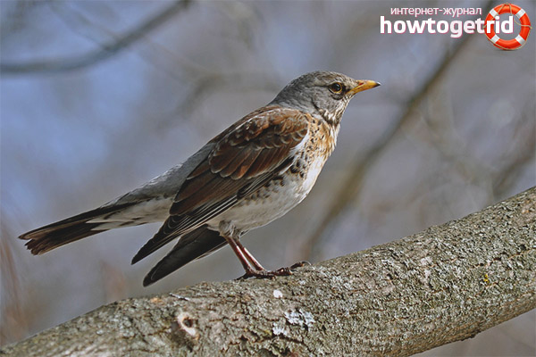 This species is characterized by a grumpy character, so it is quite easy to provoke a fieldfare to provoke a fight and scandal. This has long been learned by birds of prey, which often use this feature. Often their nests become victims of a flock of ravens. Some of them distract the thrush to make him angry and provoke a fight, while others calmly take their eggs.
