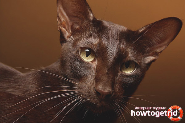 Regular Havana is a compact cat in terms of parameters with luxurious hair, monophonic coloring and relief, well-developed musculature. Havana Brown is the result of crossing two breeds - a domestic black and Siamese cat. Attempts to improve the appearance by crossing with Russian blue did not have any success, since geneticists today have not found the latter in the breed of genes.