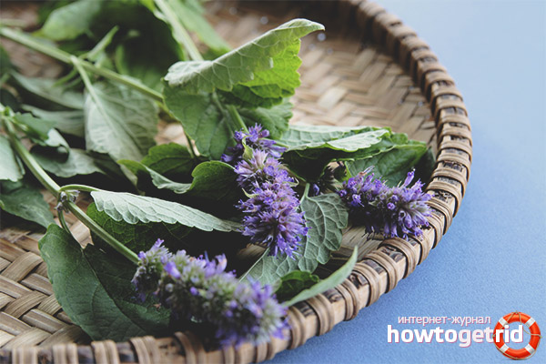 - Hyssop mixture (for suffocation): Dry collection to a fine fraction and mix in equal parts with honey. Taking a mixture of a teaspoon three times a day before meals, you can be healed of shortness of breath and noise in the ear.
