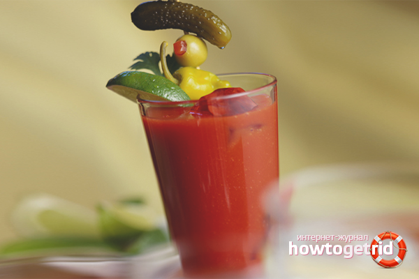 - 1 drop of any vegetable oil, 1 egg yolk, 3 drops of lemon juice, 2 tsp. tomato paste, a little black and red pepper. Mix all the ingredients and drink in one gulp.