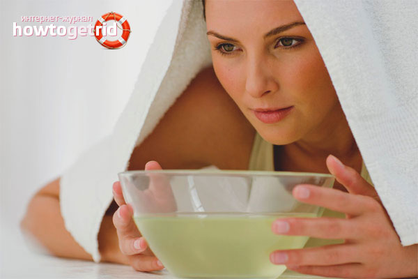 Boil potatoes and drain the water. Until the potatoes have cooled, you need to breathe it in pairs over the pan, covered with a blanket. You need to breathe alternately with your nose and mouth for 20 minutes.