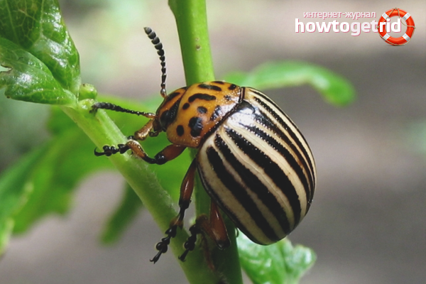 Bushes of potatoes, covered with bugs, gently tilt over the basin and shake several times. Most insects fall into the container. The plant is inspected and plucked leaflets on which there are yellow eggs. They are thrown into a basin to adult bugs.