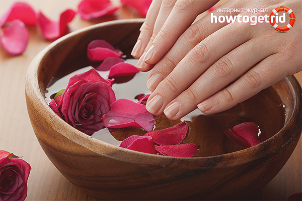 - Regularly do baths and hand masks, moisturize the skin with cream, remove dead skin particles with a scrub. Wear rubber gloves during homework to prevent chemicals from affecting the epidermis.