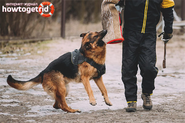 When the dog has learned to attack the attacker, it is important to proceed to the next stage of training, which consists in attacking the person leaving the scene of the conflict and holding him until the owner comes. If the training is carried out as competently as possible, then the dog will not only be able to attack the threatening person, but also learn to give the situation a certain rating. More professional courses allow the animal to distinguish between the type of weapon that the attacker uses.