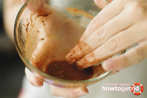 - Do not cover your scalp with a cinnamon mask to avoid possible flaking, burning and dryness. Apply the composition only on dyed places or the native color of the hair, retreating from the roots by 0.3-0.5 cm.