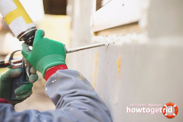 Before work, thoroughly clean the surface, moisten with water (but this is not suitable for winter, since the liquid turns into an ice crust). Attach the gun nozzle to the seam to be sealed and pull the trigger. Do this smoothly and set the desired foam exit speed with the adjusting screw. Do not pull the nozzle out of the foam and try not to make sharp pressure on the valve - this will entail uneven seams, as well as the appearance of voids and tears, which are then almost impossible to level. Fill wide long vertical seams from bottom to top - while you move higher, the foam will dry out from the bottom and create support; from left to right.