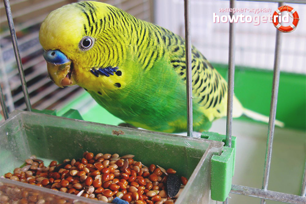 The norm of dry food for a parrot is 2 teaspoons per day. Sometimes young individuals may consume more. But remember that you can’t overfeed a bird - give it no more than three spoons per day. If a bird eats all the food given to it in the morning, do not give the entire portion in the morning. The fact is that a parrot can have a quick metabolism and a long stay without food can be dangerous. If you are leaving for a few days, do not immediately feed the entire portion of food into the feeder for the coming days of your absence. At first, the bird will eat everything, and then it will suffer from hunger, it may even die. In this case, it is better to buy a special feeder, which at a certain time produces the right amount of feed. But this, after all, is automatic and it may not work. Therefore, it is most reliable to give the budgie to friends for a while or to ask someone from the family to feed the pet.