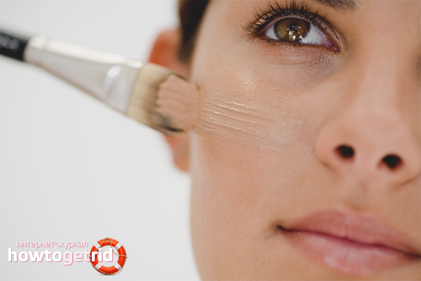 Skin defects. If there is inflammation or acne on the face, give preference to thick creamy products that include minerals and trace elements. In this case, you will be able to enrich the epidermis and create a gentle image. To smooth out irregularities and roughness, use a special sponge or sponge, which will cover the skin with a dense layer.