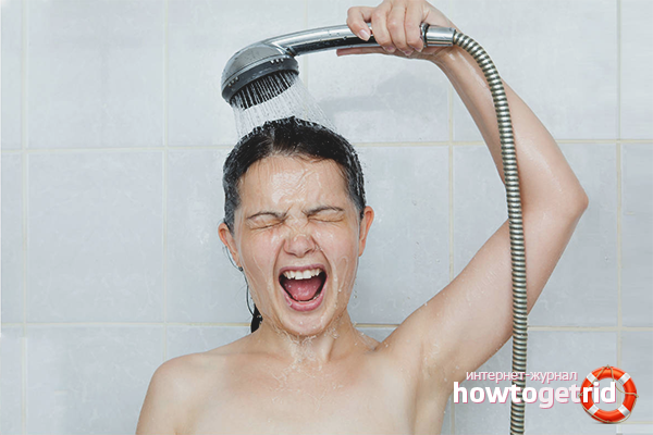 - Now gradually begin to lower the temperature to cool. Do not change the direction of the jet, keep the shower still at the top. After 1 minute, go down to the chest and stomach, rinse these parts of the body for 30 seconds, move to the hips and feet. Hold at the end point for 10 seconds. Important! It is not recommended to dip your head with water, especially for beginners. During the procedure, do not stand still like an idol, rearrange your feet, stand on your toes and make other movements that allow you to warm up.