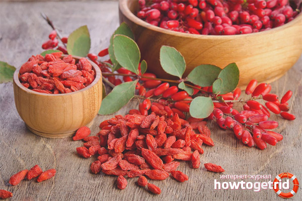 - You can use the following recipe: you need to mix in equal proportions barberry, goji fruit, a little adonis and mistletoe, 1 tablespoon each. Raw materials need to be poured with boiling water and cook for a quarter of an hour.Next, the drink should be allowed to brew and strain. It is necessary to use a tablespoon of such a tool twice a day. The duration of treatment is 3 weeks.