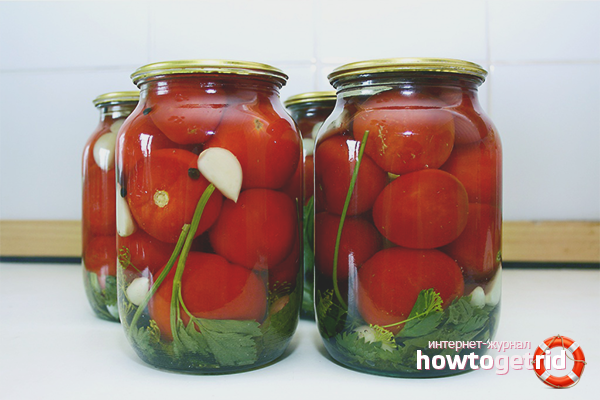 - Sterilize containers in which tomatoes will be closed shortly before spinning. It can be liter or three-liter glass jars corked with tin / plastic lids (they also need to be boiled).