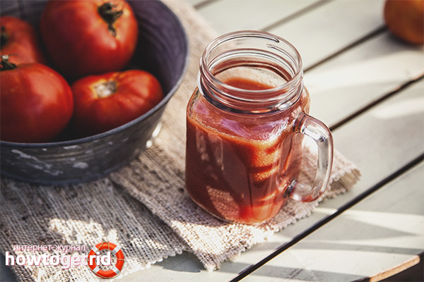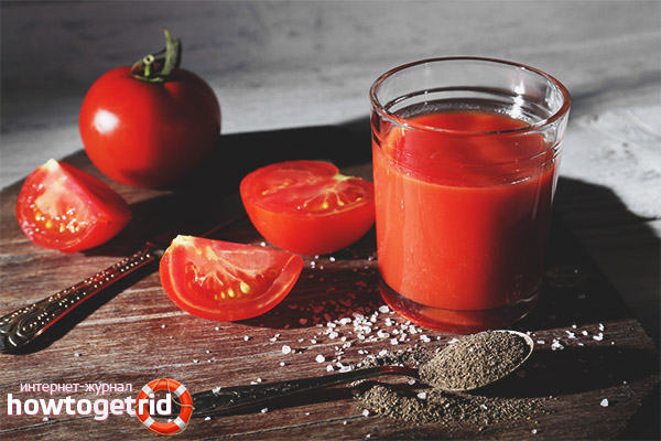 - The drink is successfully used to heal skin lesions. It contributes to the disinfection of cracks and wounds, enhances regeneration processes, protects against external factors. Squeeze from tomatoes is in demand in cosmetology when whitening the face from pigmentation, freckles, and other imperfections.