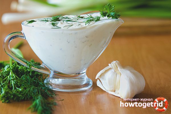 You can modify the available recipes as you wish, but try to keep the proportions of the main components. Traditionally, the sauce is made from garlic and sour cream, mayonnaise, yogurt, meat broth, fermented baked milk. Often, greens, favorite seasonings, and salt are added to the composition. Many housewives prefer to preserve the composition for the winter in order to be able to enjoy dressing all year round.