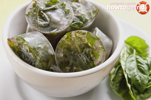 After cutting from the garden, it is best to soak the grass in cool water with the addition of salt for about half an hour.After that, rinse the greens well with running water. The basil branches need to be laid out briefly on paper towels so that it dries. Then, separate the leaves from the stems and place them in plastic bags or bags. Let the air out of the bags and tie it well. Cooked bags are placed in the freezer. In this form, you can store valuable seasoning until a new crop. If you want, then basil greens can be finely chopped before freezing.