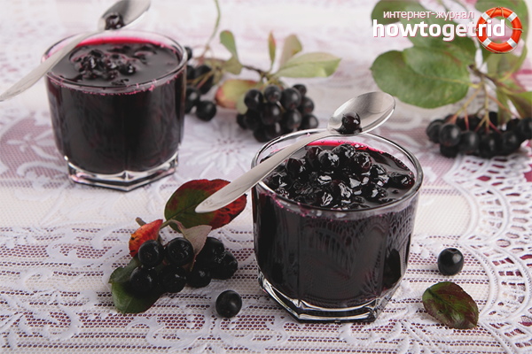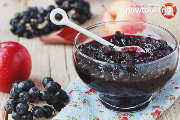Jam based on chokeberry and other components normalizes the psycho-emotional background, fights insomnia, lowers blood pressure, eliminates fatigue and treats migraines. A day is recommended to consume a minimum of 45 grams. goodies, combining it with pastries and hot drinks.