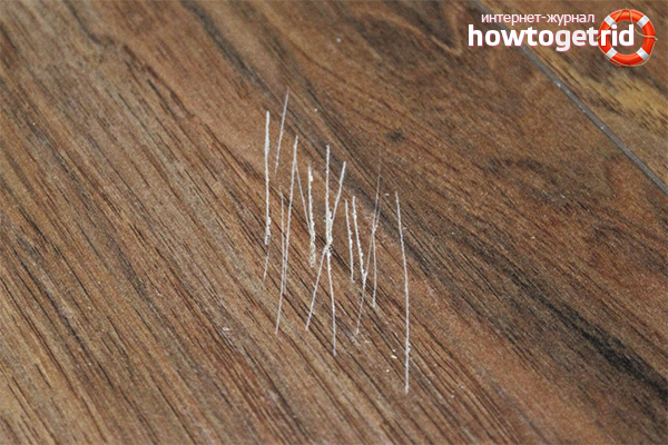 - In order not to puzzle over how to remove scratches from the laminate, try to limit their appearance as much as possible. For example, walking in street shoes or slippers with hard heels can leave very visible marks on the surface.