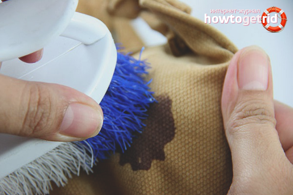 Next, find a clean cloth, a piece of cloth, a cotton swab, or a soft brush, which you will use to apply the cleaning agent and remove the stain. If you use a stain remover or other special-purpose product, dilute it in accordance with the instructions, having prepared the required amount of solution. Use a glass or ceramic container for this and in no case mix directly on the affected tissue. After all preparations, try the action of the solution on a spare piece of the same material or, if there is none, on a small area of the inner seam. In the second case, it is better to turn the thing inside out and apply a weak solution to the side seam, since there they are usually the most dense and do not adhere to the main fabric. If after some time the material does not deteriorate, feel free to proceed to remove the stain.