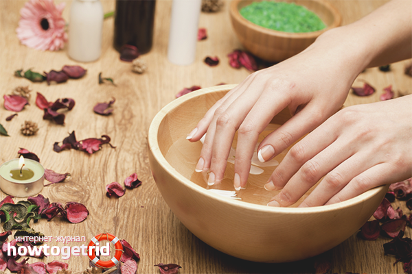 - Iodine-salt baths. This is one of the most effective tools for the growth and strengthening of nails. Dissolve a tablespoon of salt and a few drops of iodine in a glass of warm water. Hold in the bath for at least half an hour.