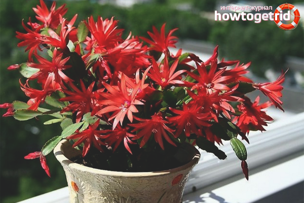 At the end of the month, it is recommended to feed zigocactus with any fertilizer for flowering plants. This contributes to a long and lush flowering. Or give a mineral water with a high content of phosphorus and potassium. Nitrogen is not added.