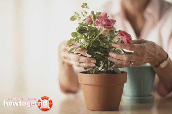 Slippery soil that exudes a sour smell is thrown away. Symptoms indicate a fungus that cannot be destroyed. The pot is disinfected, the roots of the ornamental bush are cleaned from the ground and washed, and then planted in new soil. This is the only way to save the rose from infection and death.