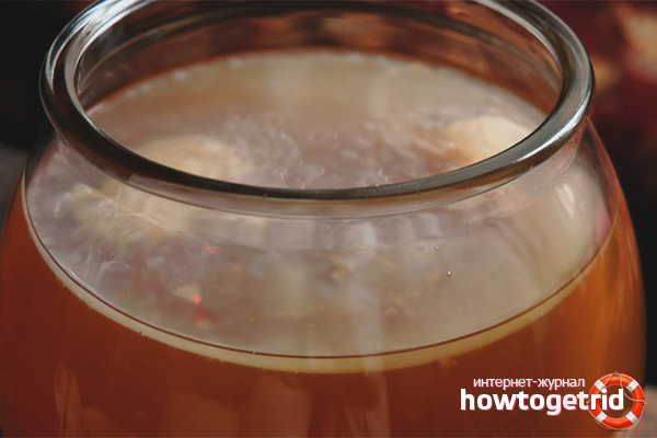 Select dense, uniformly colored fruits, rinse, dry and grind a little. 6 tbsp. l pour into a clean thermos, pour boiling water in a volume of 0.6 l. Close and deliver for 6 days. Then strain and pour into a three-liter jar, adding the same tea solution, which is prepared in the following proportion: 1 tbsp. l tea, 5 tbsp. l sugar, and boiling water in a volume of 220 ml. Place gauze on the neck of the container and leave it in a warm, dark place. Then repeat the previous method.