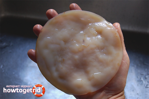 Every two weeks, it is necessary to bathe the medusomycete, carefully removing it from the can. Rinse gently with warm water, being careful not to injure yourself. Then leave for a couple of minutes on a plate to breathe air. Strain the contents of the jar and pour into a clean container. Wash the jar and return the mushroom to it.