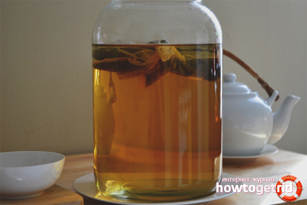 The healing effect of the finished drink is not more than one month. Subsequently, taste qualities are also lost, it will be more vinegar than an invigorating elixir. After keeping the liquid for a week, it is half drained and put into storage in the refrigerator. And in the jar they add newly strained tea kvass. When a new portion is ready - again pour out a portion and make up with fresh tea leaves.