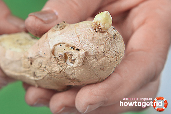 First you need to purchase the right planting material. Have you ever planted potatoes? When growing ginger, the process is approximately the same. First, you need a fresh, dense root with at least a few living buds (or “eyes”, when compared with potatoes). It happens that they are, but the root itself has already subsided, has become soft.Then it should be placed for some time in the water so that it gains strength and elasticity. The liquid should be warm, this will help sleeping kidneys to wake up quickly.