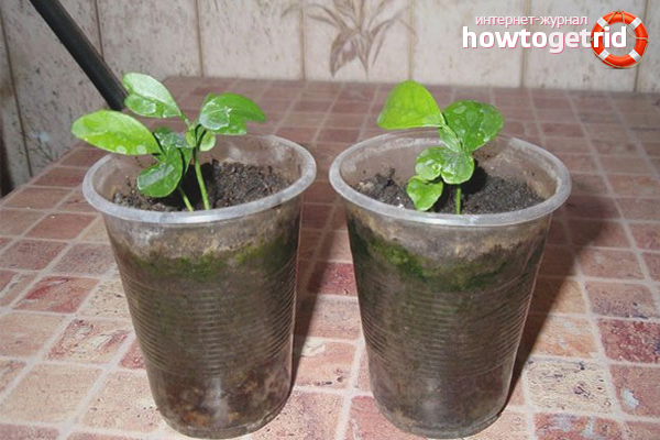 In the soil, make a small depression, about 1.5–2 cm, slightly moisten the soil and stick a few seeds in it. It is recommended to take 2-3 grains per hole, because part of the planting material may be empty and non-viable. If several sprouts immediately hatch from the pit, they leave the strongest and healthiest specimen, the rest are carefully pulled out or cut to the very root.