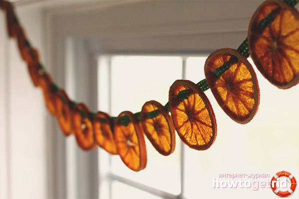 In some cases, the elements are prepared in a standard way, and after that the installation is assembled from them, and sometimes you need to take care of the fasteners in advance, since the dried fruit becomes brittle. We will talk about how to prepare oranges for decoration below.