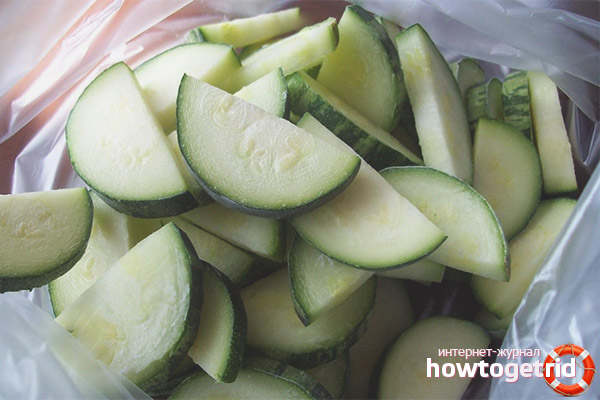 - For convenience, use paper towels. Then transfer the workpiece to a dry plastic container or bag. Send vegetables to the freezer to freeze. To prevent product sticking, freeze zucchini on a tray in one layer. Then transfer to packages.
