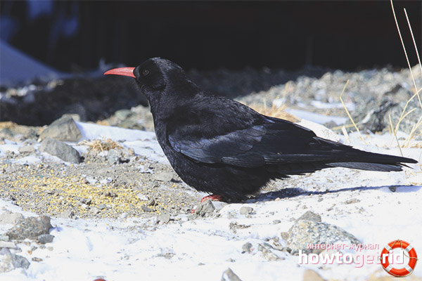 This kind of bird as a naughty bird is not too picky about food. In some areas, these birds mainly feed on food found in landfills. The main diet is invertebrates, small insects, fruits and seeds of plants. The nest collects part of the food necessary for food near the nesting site, and for the rest rises high in the mountains.