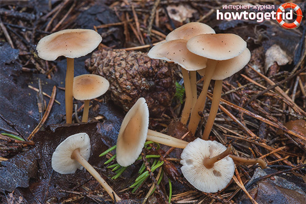 According to the variety of mushrooms, the forest-loving colibia is referred to the non-fungal family. In the people, this variety of mushrooms is usually called the open air spring because of its external resemblance to honey agarics. However, often such confusion occurs by mistake and inexperience of the mushroom pickers themselves. In fact, collibia is considered a parasitic fungus and has nothing to do with honey mushrooms.