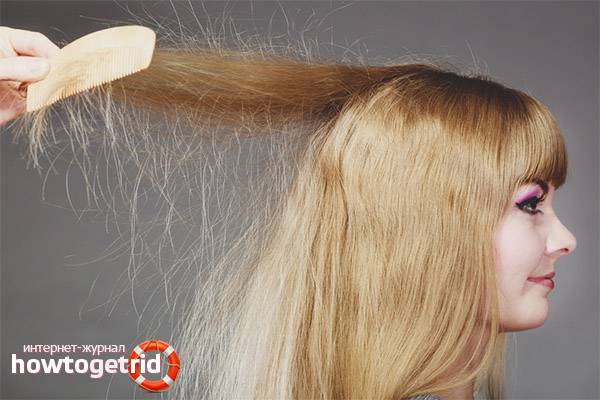 - Another reason is the incorrect choice of hairdressing tools. Metal or plastic combs cause a strong electrification, but devices made from natural materials completely eliminate this effect.
