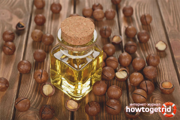 - As mentioned above, massage products can be prepared from Macadamian oil. In this case, our squeeze acts as the main component, 30 ml. the base is taken another 5 drops of any essential oil. After mixing, it is necessary to grind the skin until redness, paying attention to aching or problem areas.