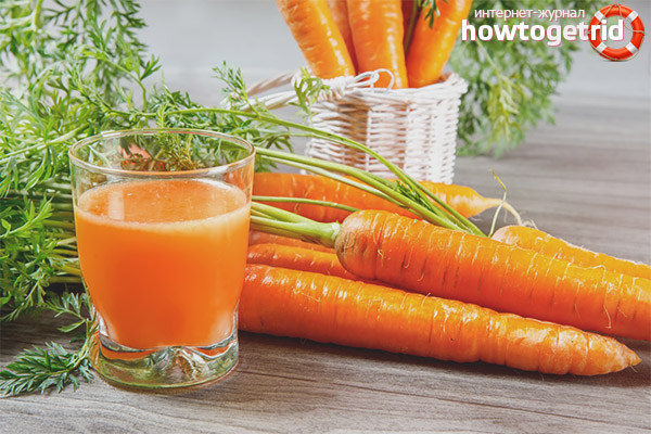 Iron from carrot juice is perfectly absorbed by the body, promotes the production of red blood cells and hemoglobin, and is responsible for cellular respiration. Regular consumption of fresh juice reduces the risk of iron deficiency anemia, which is accompanied by dizziness and fainting, pallor of the skin, oxygen starvation, and weakness.