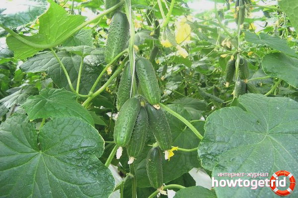 - Ovaries form a bunch, in one sinus from 6 to 8 cucumbers.